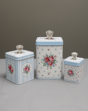 🍵 Vintage Kitchen Storage Canister Set – 3-Piece Decorative Tins