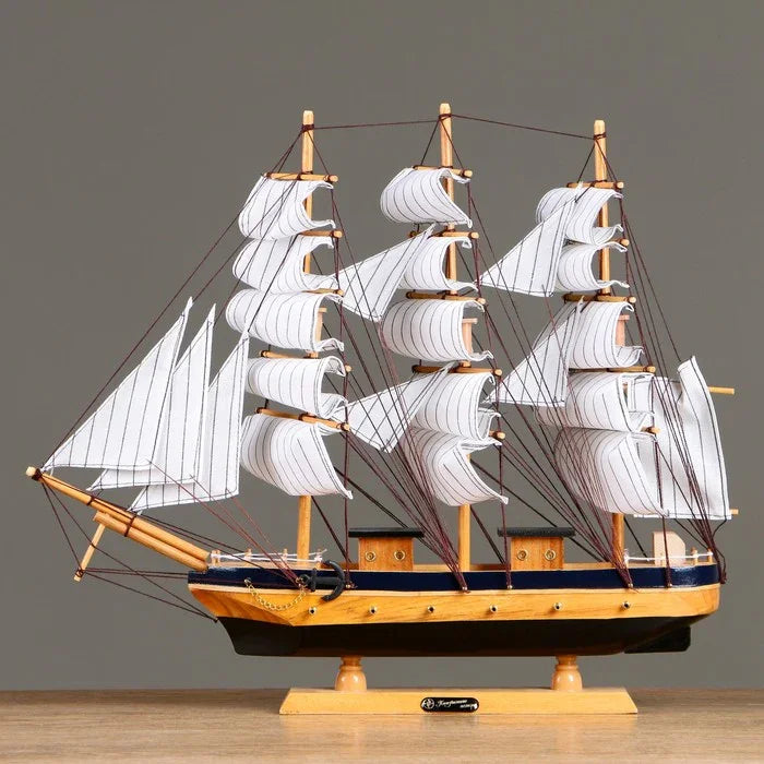 ✨ Design: Multi-sail vintage ship model with detailed mast ropes, wooden deck cabin, and classic nautical base stand