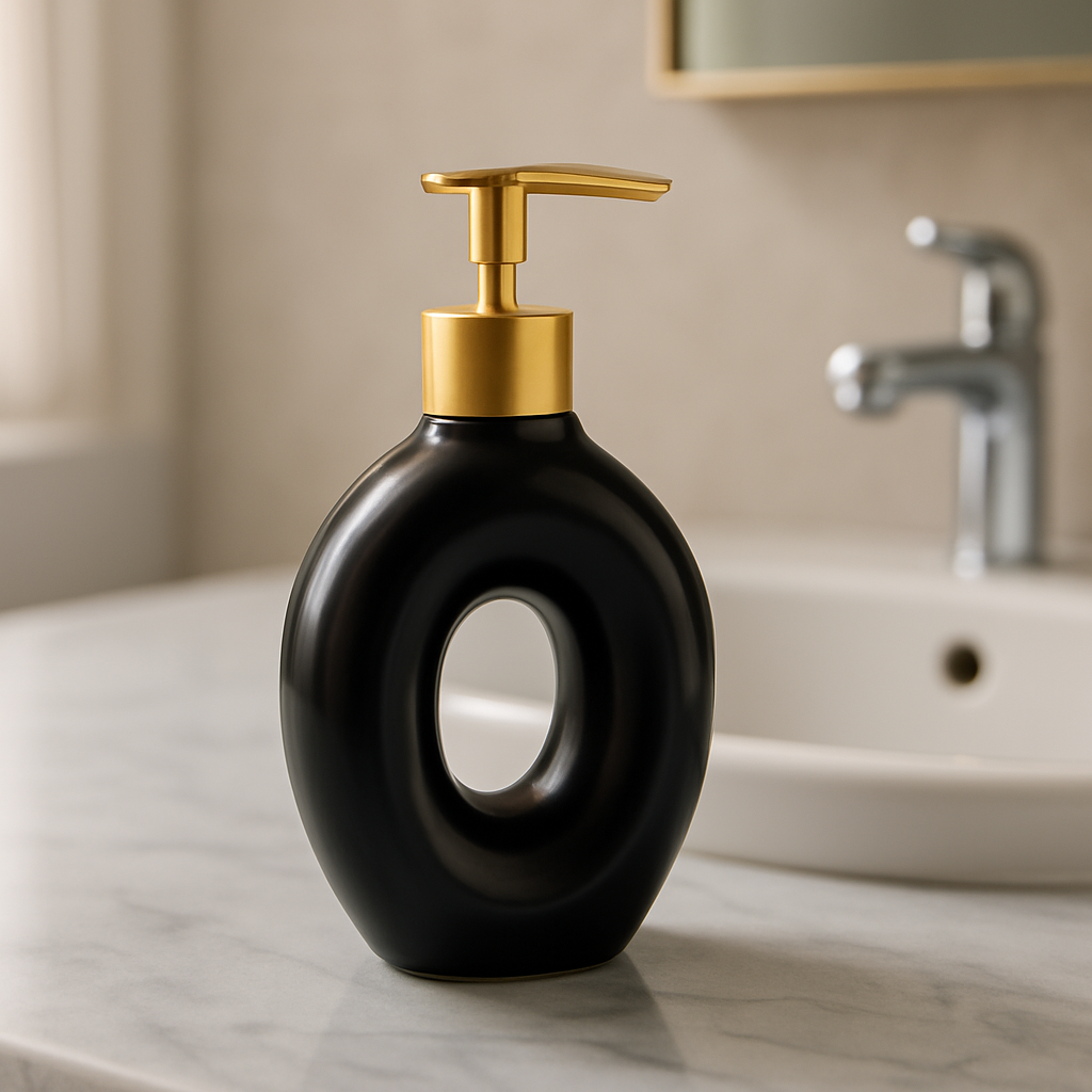 This matte white ceramic dispenser with a golden pump is the perfect balance of functionality and style — blending seamlessly with both modern and classic interiors.